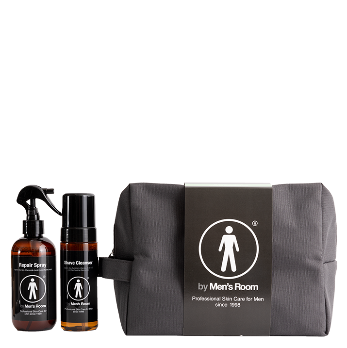 Step 2: Repair Spray: Repair Spray by Mens Room is both aftershave, aftersun, skin tonic and moisture care. Convenient multifunctional product for men's skin, for example, instead of perfumed and alcohol-based aftershaves. The skin is soothed and moisturized by organic aloe vera, chamomile, vitamins and lactic acid soothes the tissue and prevents infection. The patented Hydroveg, which helps against ingrown hairs and blockages, binds moisture in the skin without greasing.
